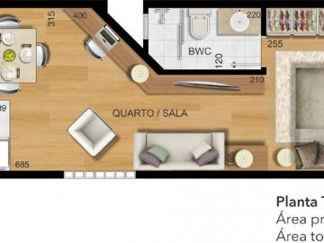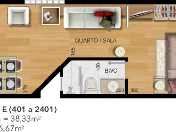 Edifício de Stúdios, apoiado por toda a infraestrutura do centro de Curitiba, oferece unidades com 35 a 38 m² privativos, todas unidades com sacada.