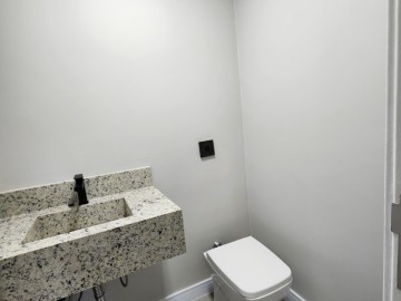 Começando com uma garagem para 2 veículos entrada com porta de aluminio e fechadura automatizada que funciona com digitais ou senhas numericas. Ao adentrar ao hall de entrada irá vislumbrar um amplo ambiente integrado para sala de estar com lareira e infraestrutura para internet, sala de jantar e cozinha com churrasqueira, ilha para cozinha americana, infraestrutura para coifa, pia dupla, granitos e metais instalados. Próximo ao hall de entrada tem-se um generoso lavabo com pia esculpida em granito, louça moderna e descarga hidra. Ainda no térreo adentra-se a uma ampla lavanderia com granito metais e infraestrutura para maquinas de lavar/secar.