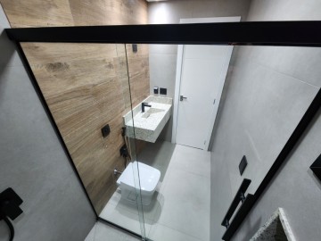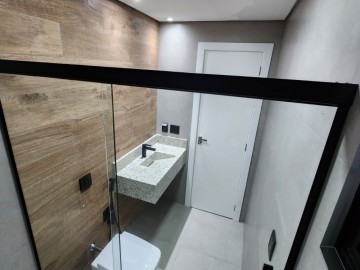 Chegando no segundo piso depara-se com um lindo piso laminado que se propaga por todo andar. Caminhando terá acesso aos 3 quartos, muito amplos e atuais com infraestrutura para ar condicionado, persianas integradas com controle remoto e internet. No corredor há um banheiro social que atende a dois quartos que contempla granitos esculpido, piso aquecido, controle de temperatura para o banho, ducha higienica, box e metais instalados. O quarto suite é a grande atração, sendo muito amplo com closet, jardim de inverno, infraestrutura de ar condicionado e sacada. O banheiro da suite traz muita inovação com granitos esculpidos, piso aquecido, controle de temperatura para o banho, ducha higienica, banco de sauna com led, box e metais instalados.