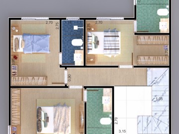 Condomínio de 3 sobrados com aproximadamente 140m² de área útil, podendo no futuro ser ampliado para 180m² com terraço descoberto.