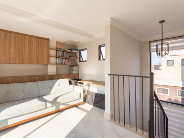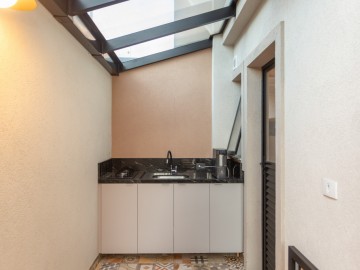 No Ático, temos uma área de estar íntimo e amplo terraço com vista para área verde.